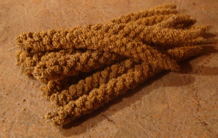There is, however, a plentiful supply of unhulled millet readily available in stores, and that is—Budgie Mix. Yes, you can make oshikundu from bird seed, and in fact, the flavor is superior to that made of plain millet. The important consideration is to find a mix that has only seeds in it, and this is usually provided in bulk. The mix that went into Simba Oshikundu consisted of about two-thirds red and white millet, with the remainder made up of canary grass, niger seeds, sesame seeds, and brown flax. I was initially skeptical, but as it turns out, those budgies know good chow!